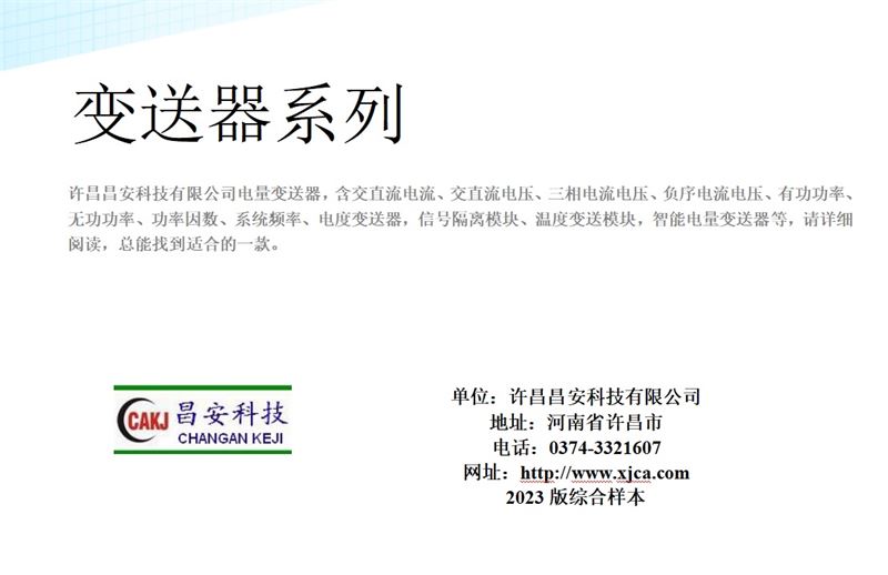 許昌昌安科技有限公司是專業生產智能電力測控設備及自動化裝置的高科技公司。產品包括電力系統微機中央信號報警裝置,電纜絕緣在線監測裝置,相地保護裝置,電流、電壓監視繼電器,失壓斷流計時儀,多功能電力儀表、電量變送器、溫濕度控制器、智能操控裝置等產品,形成了多系列為電力系統成套企業配套的產品及服務。 公司注重新技術新產品的開發,同時全面貫徹ISO9001質量保證體系。 公司前身為許昌市儀器儀表研究所。多年以來,公司致力于測控儀器儀表的開發生產,積累了豐富的為電力用戶服務的經驗及產品,形成了一個充滿活力,積極進取的團隊。